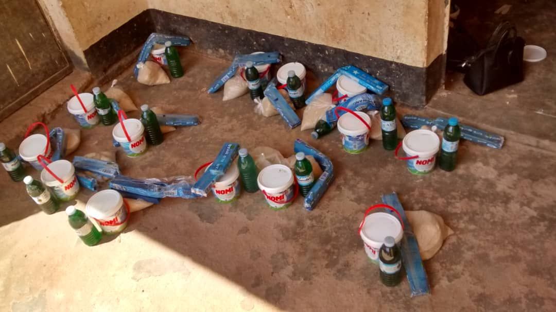 Om de druk van de locdown te verminderen, hebben we een aantal etenswaren en ontsmettingsproducten uitgedeeld aan alle 25 medewerkers van de Laker Memorial School.